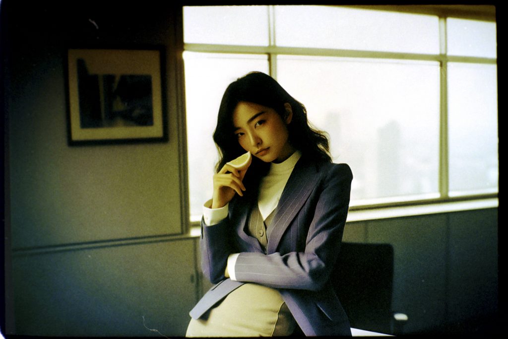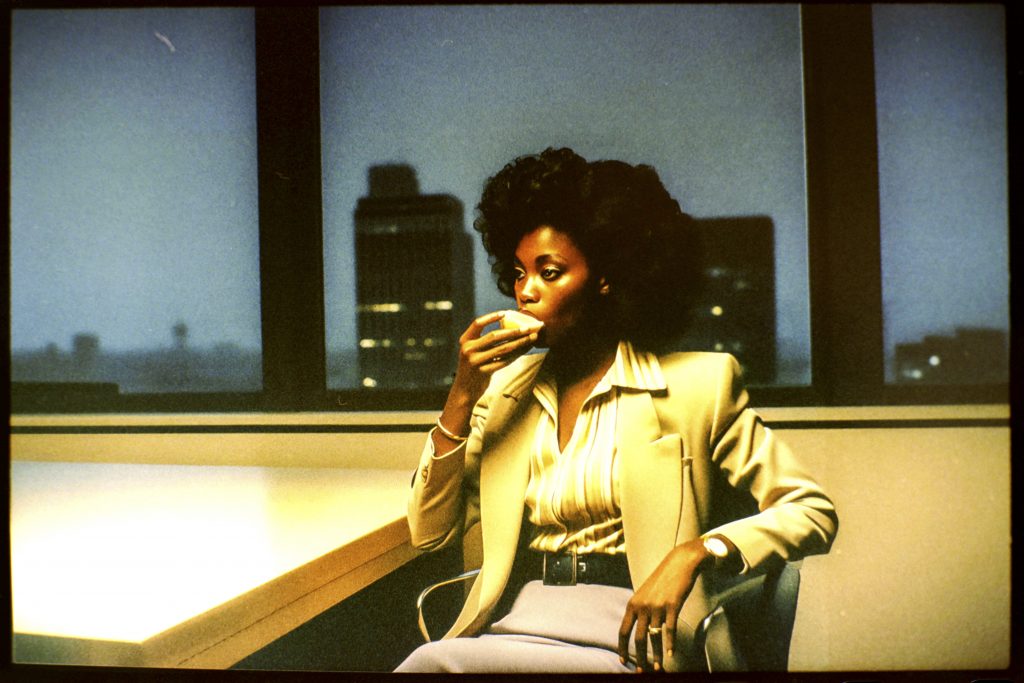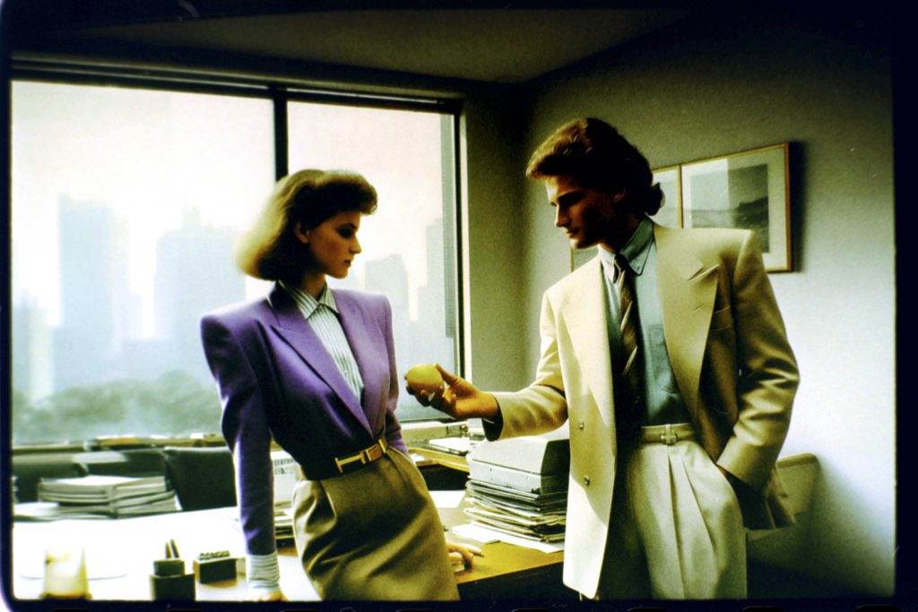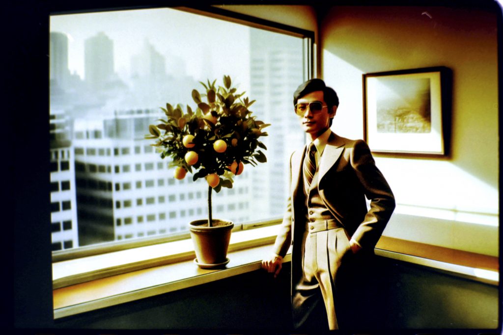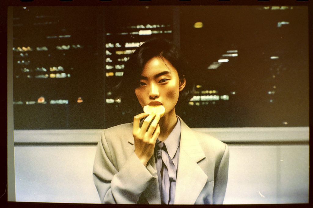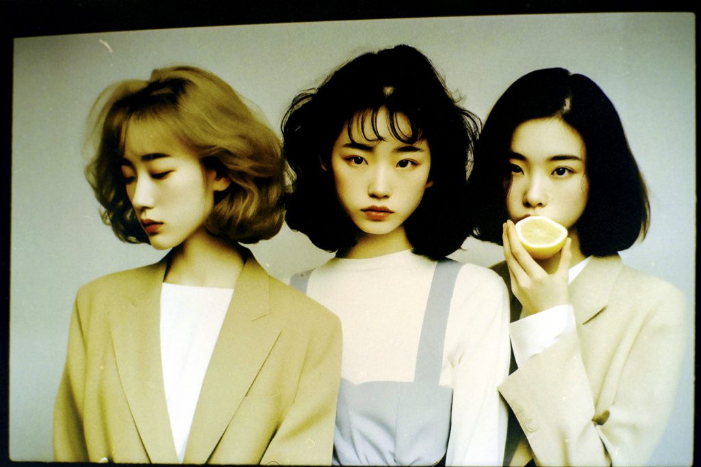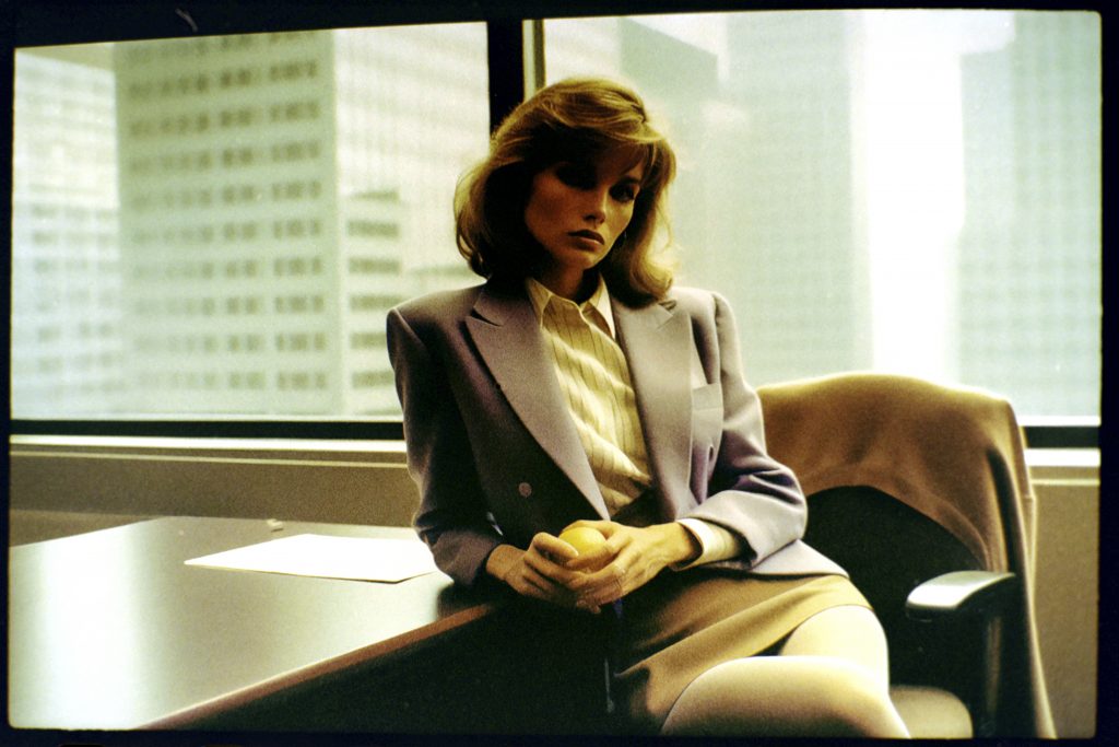 Using AI image generators and Photoshop to adjust the early weirdness of these tools to a viewable degree, a prompt generator was developed. This generator fed the machines with fashion combinations, photographic details, and the key element of a woman holding or eating a lemon.